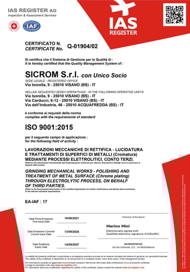 CROMATURA A SPESSORE RETTIFICA E LUCIDATURA